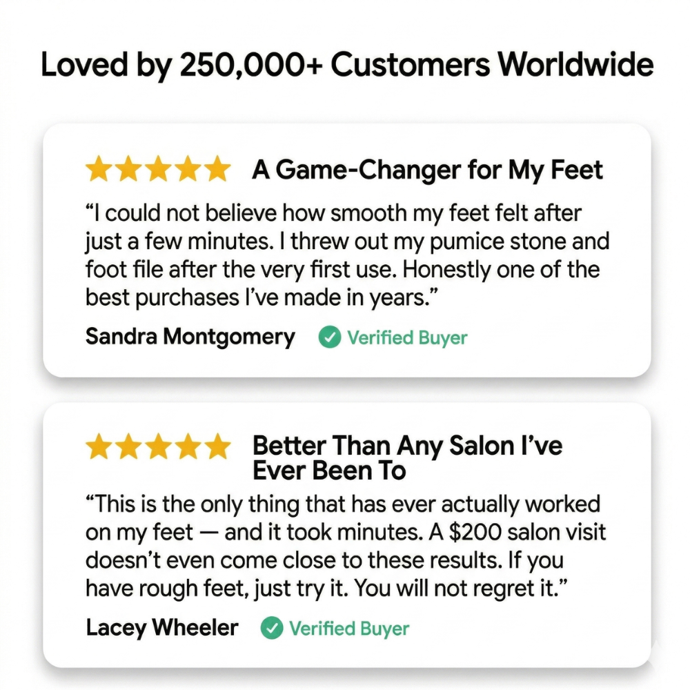 Over 250,000 customers trust Cremores Silk Pedicure — and we're confident you will too. That's why every purchase is backed by our 100-Day Risk-Free Trial.